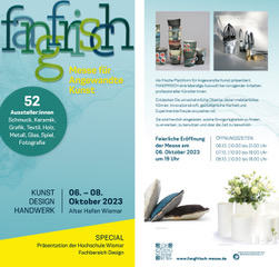 „fangfrisch“ Messe für Angewandte Kunst Alter Hafen Wismar 52 Aussteller*innen zeigen ihre hochwertigen Arbeiten PDF Faltblatt [32 KB] ... |